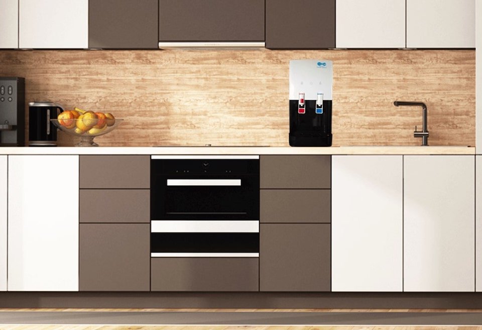 A Fonte de Água é um equipamento de filtragem e tratamento de água muito versátil, pois poderá ser colocado na bancada ou outro local da cozinha. Como é um equipamento ligado à água da companhia é importante estar facilmente acessível à mesma.