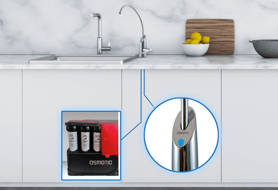 As máquinas de filtragem Osmotic, Miawa e Osmobasic, são equipamentos que ficam instalados dentro do armário, por baixo do lava-louça e disponibilizam a água através de uma torneira que é colocada no lava-louça.